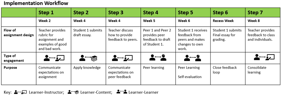 Peer feedback is also a complex, multi-step process where both internal (self-generated) and external (peer-provided) feedback can be harnessed for deeper learning. This also positions students as active agents in the feedback process (Carless & Boud, 2018).